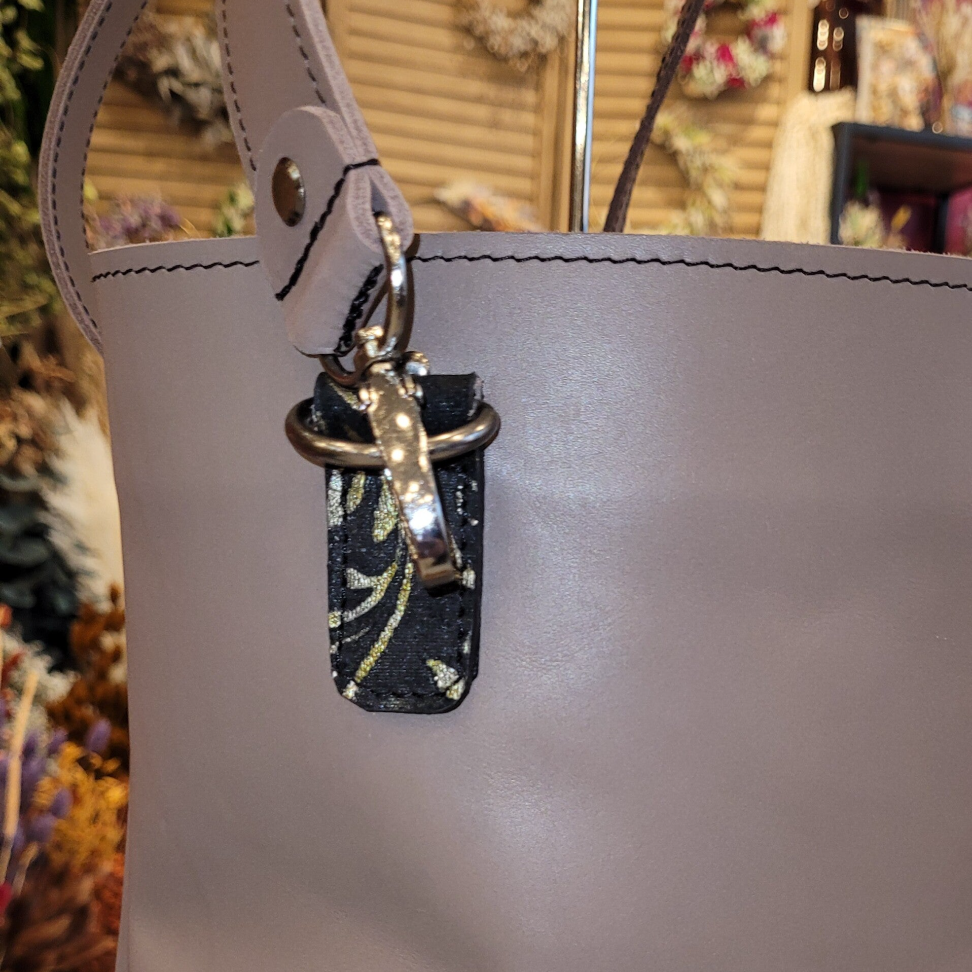 Ce tote bag en cuir de vachette couleur taupe et peau de chèvre esprit baroque, est une pièce unique ANA M.