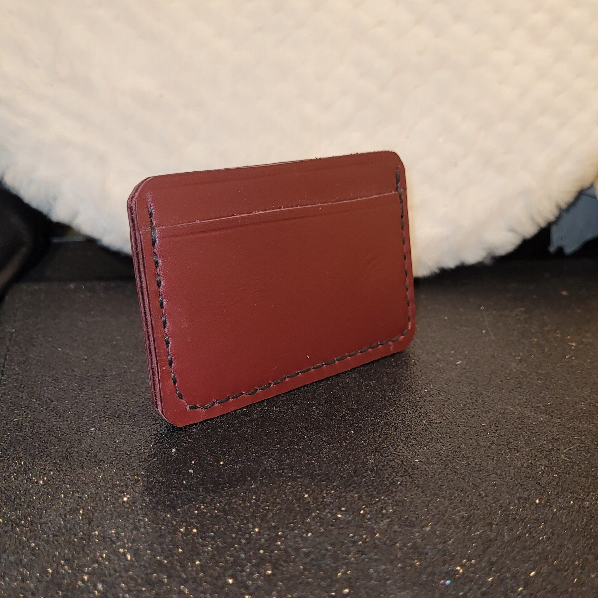 Porte-cartes en cuir de veau cousu main. Cet étui à cartes vous permet de ranger une carte de chaque côté et vos billets au centre.