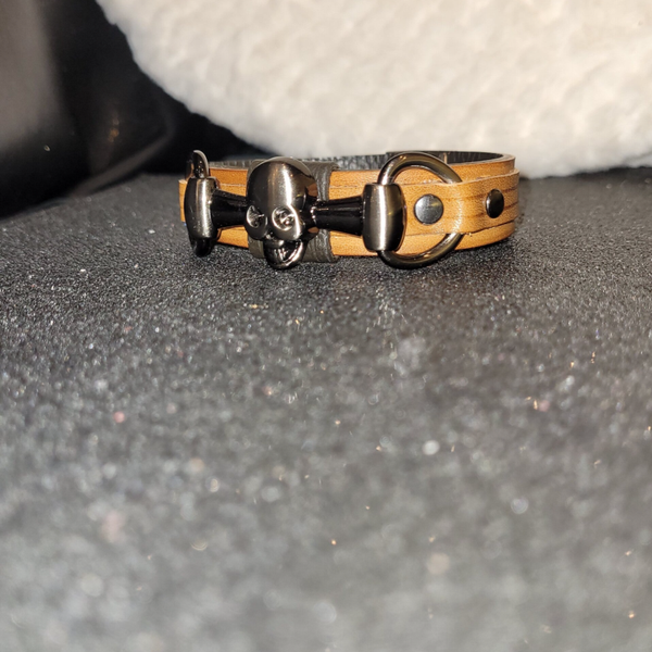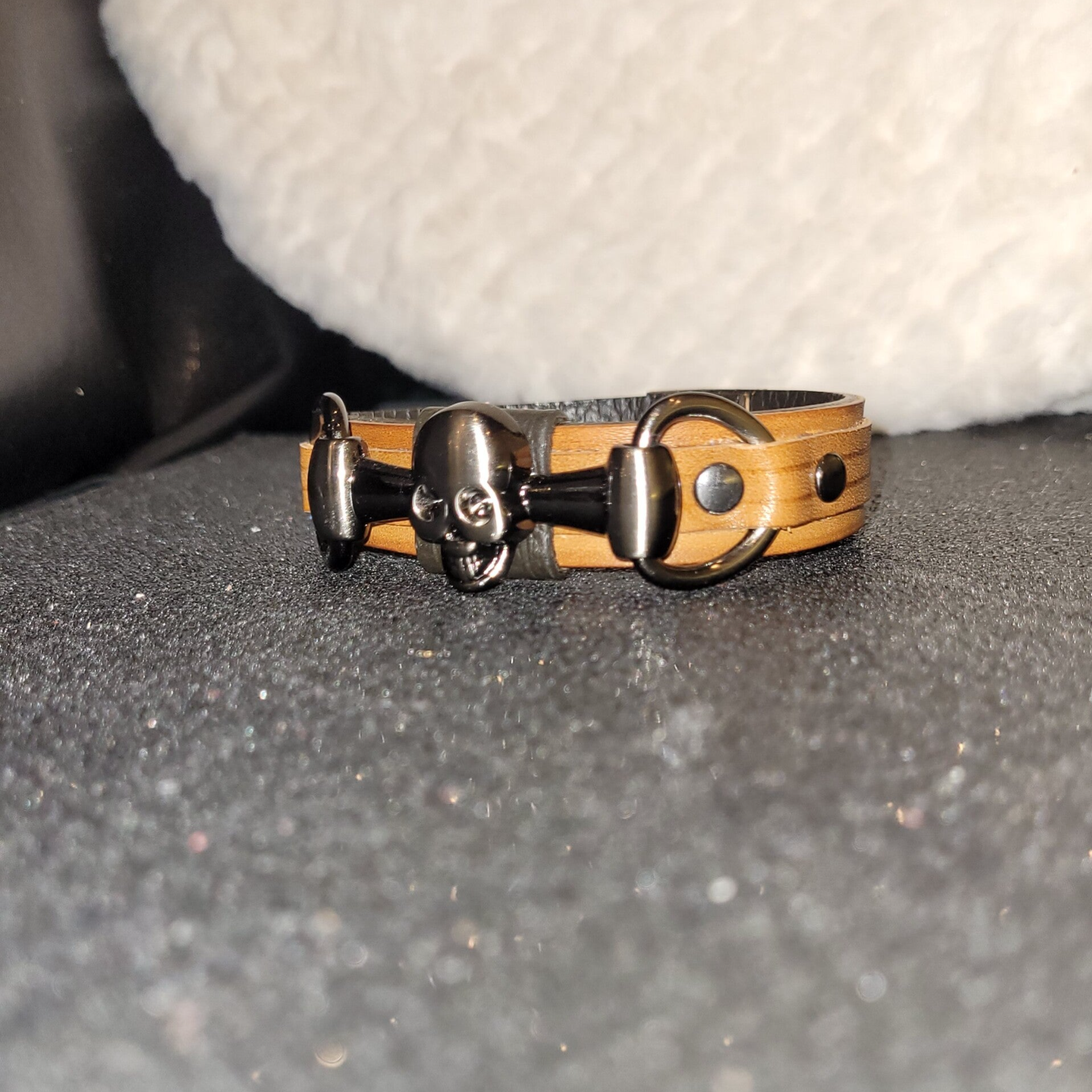 Bracelet en collet couleur camel - bijou acier inoxydable tête de mort
