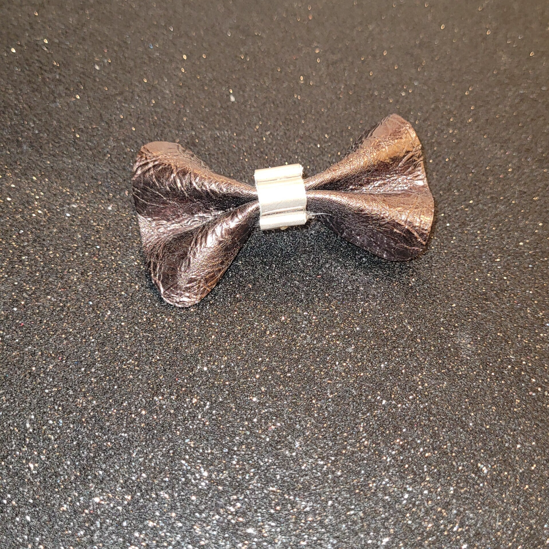 Pince à cheveux - mini nœud papillon en cuir marron glacé