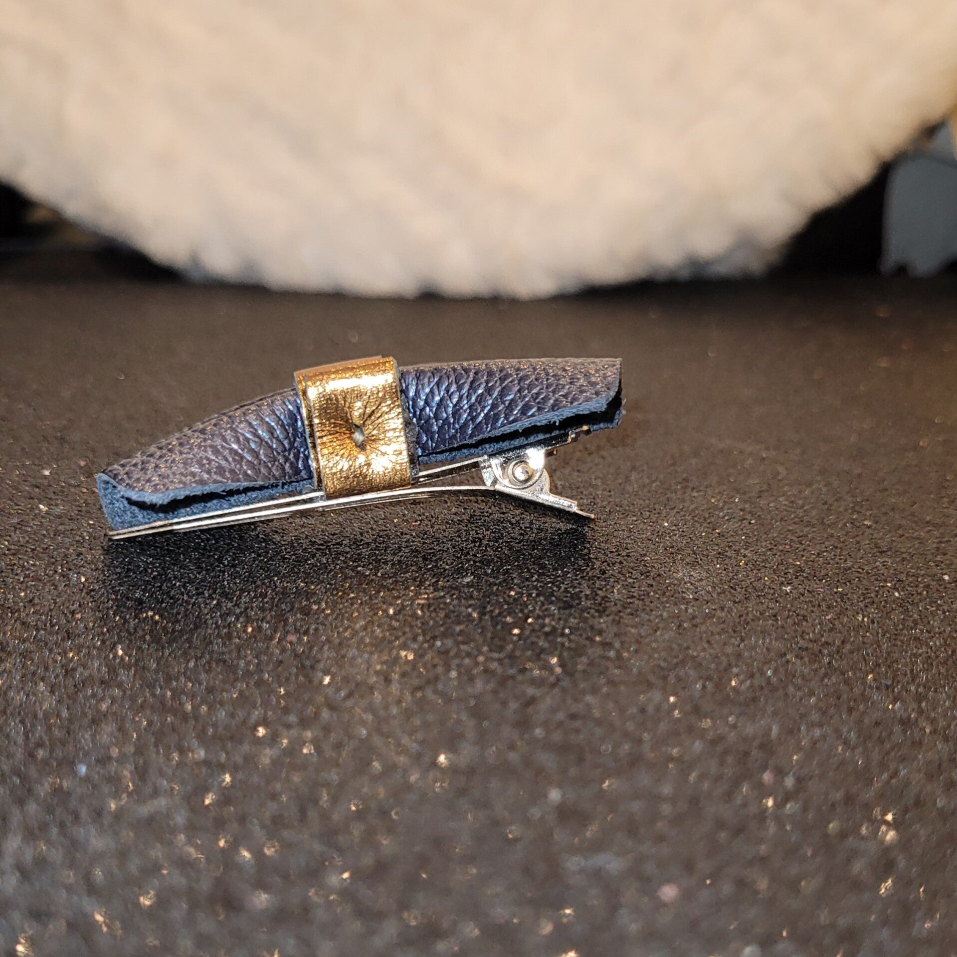 Pince à cheveux - mini nœud papillon en cuir bleu irisé